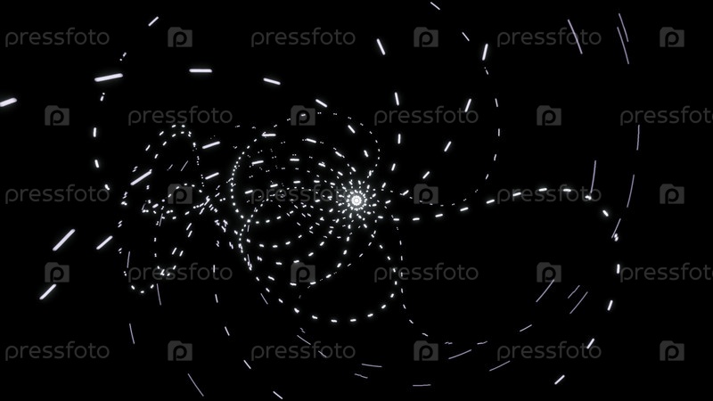 Черный фон. движение. бело-синие световые детали, создающие вращающиеся изображения в анимации