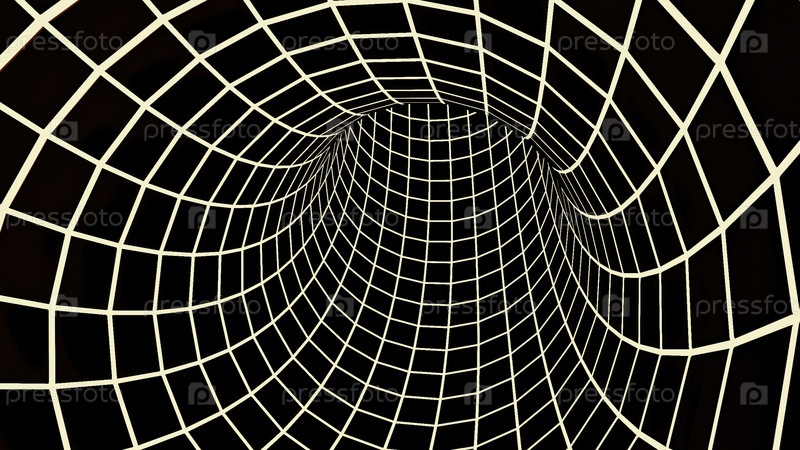 Быстрый гипнотический тоннель с сеткой. Дизайн. Кибернетическая сеть внутри виртуального туннеля. Киберпрыжок в тоннель с сеткой