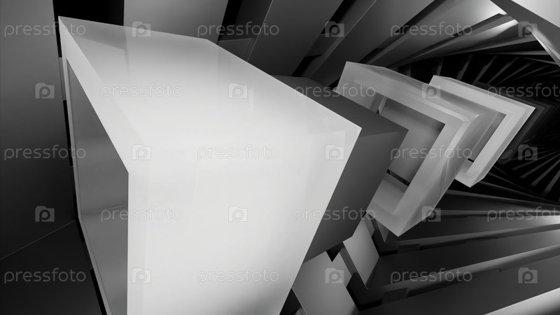 Абстрактная оптическая иллюзия с кубиками, летящими сквозь квадратные силуэты. Дизайн. Красочный туннель с левитирующими фигурами