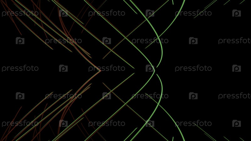 Яркие многоцветные тонкие лучи. Дизайн. Черный фон и линии, появляющиеся в анимации , которые горят яркими оттенками