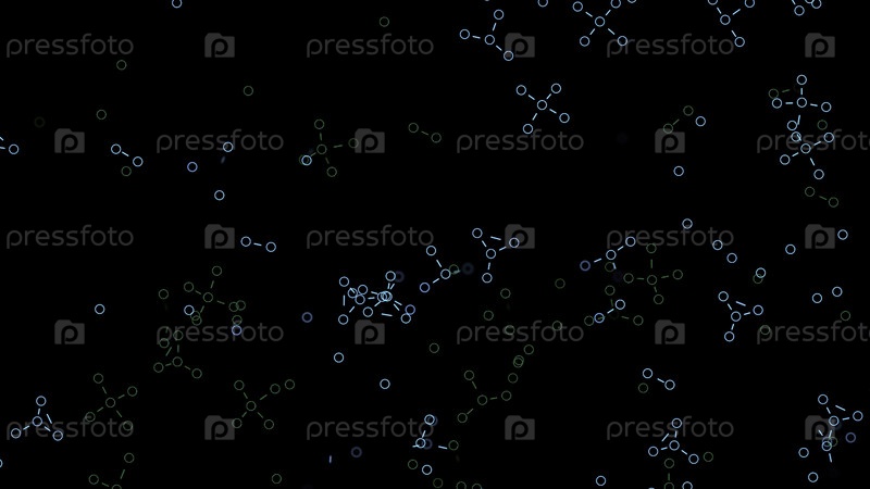 Абстрактные химические формулы, трансформирующиеся на черном фоне, бесшовная петля. Анимация. Цифровые молекулы меняются на темном экране