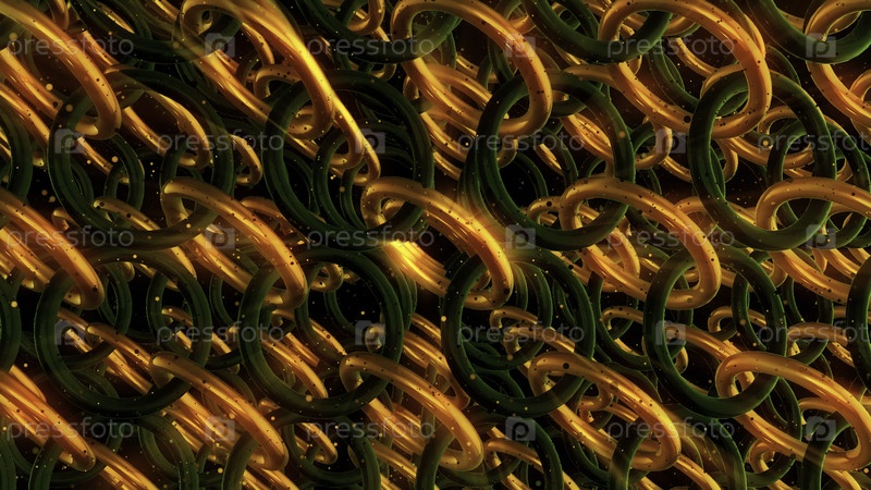 Золотая светящаяся анимация связанных кругов, бесшовная петля. Дизайн. Ретро-образ с блестящими кольцами, вращающимися медленно