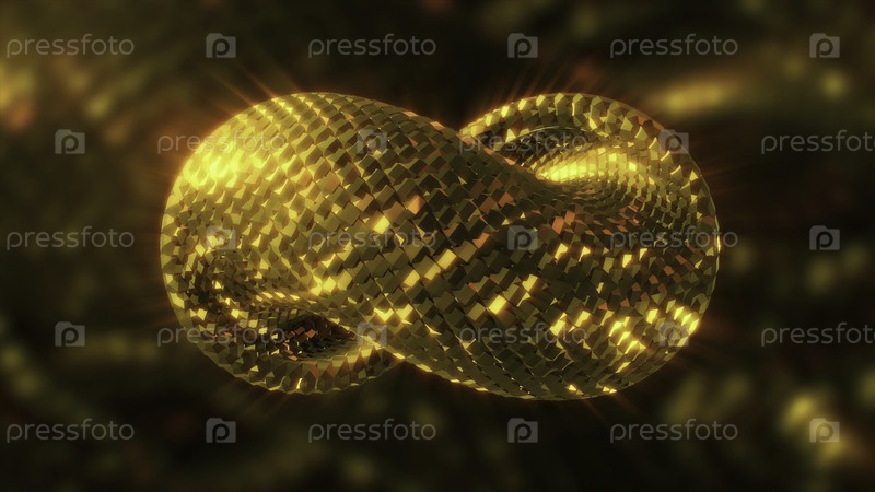 Блестящая спиральная петля. Движение. Яркая глянцевая спиралка движется медленно на размытом повторяющемся фоне. Красивая стильная анимация блестящей 3D-спирали