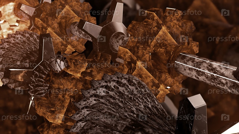 Редукторы, вращающиеся в механическом устройстве.Движение.Абстрактная анимация крутящихся колесных колес, концепция машины