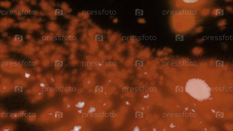 Пространство с светящимися пушистыми шарами. Движение. Поле светящихся шариков в темном пространстве. Много светящихся шаров в стиле аллергенов или болезней