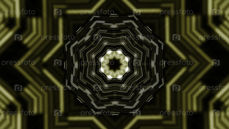 Цветный геометрический калейдоскопический фон. СМИ. Орнаментальный симметричный рисунок со звездами, бесшовная петля