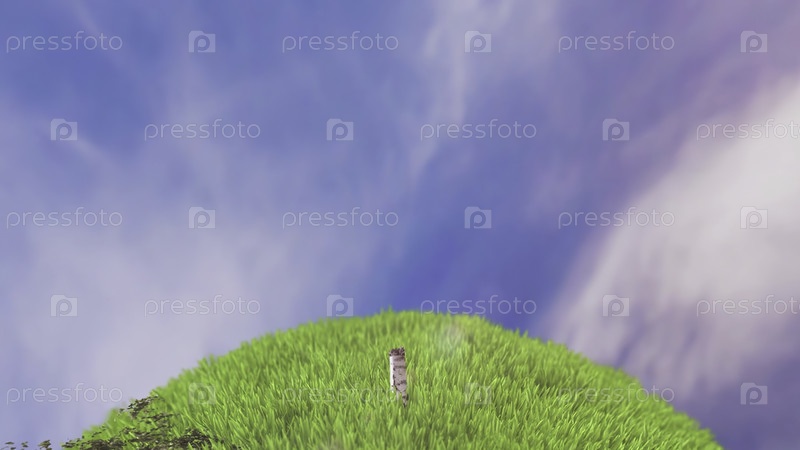 Одинокое дерево величественно стоит на пышно-зеленом холме под чистым голубым небом