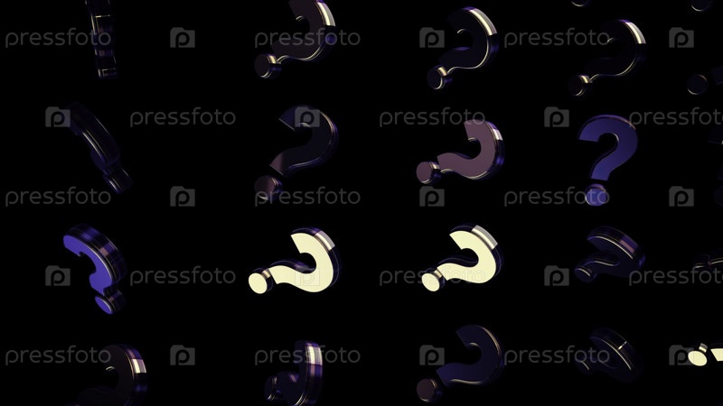 Резюме движущихся вопросительных знаков на черном фоне. Анимация. Двигающийся фон со зеркальными вопросительными знаками