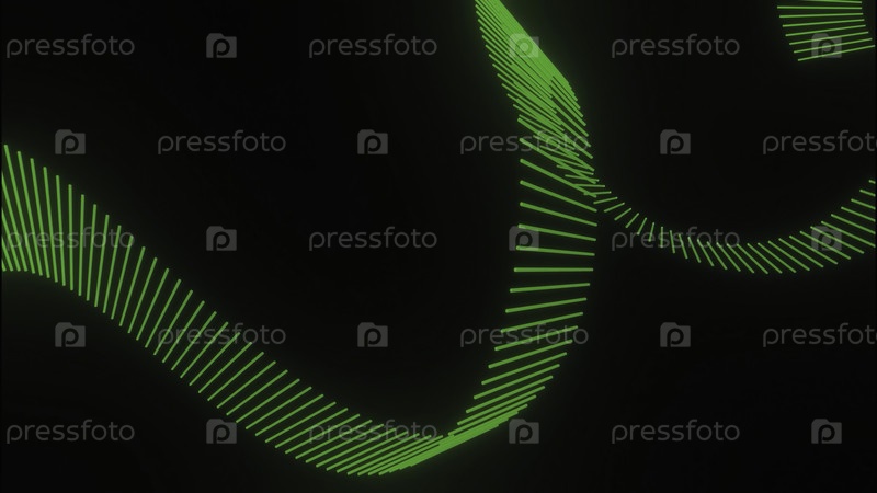 вращающаяся спираль неонов, изогнутая зелеными линиями на черном фоне. дизайн. зелёный вращающийся 3D-спирал