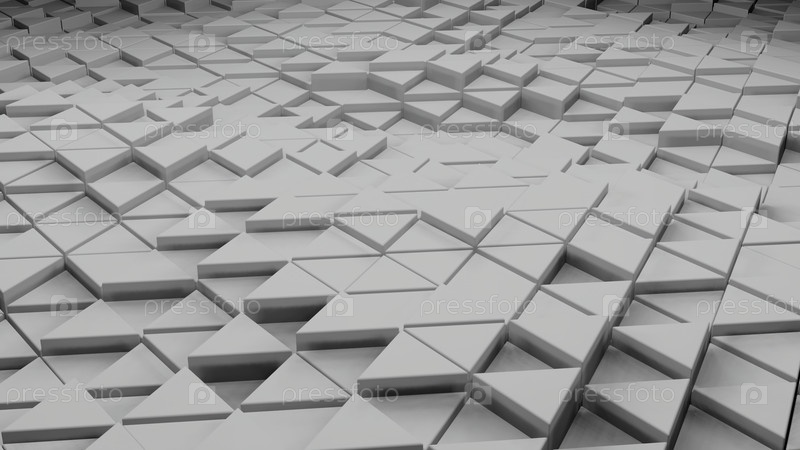 Поверхность трехмерных треугольников, движущихся волнами. Дизайн. Волновые колебания на поверхности треугольников. Геометрическая поверхность с треугольниками колеблется и вибрирует