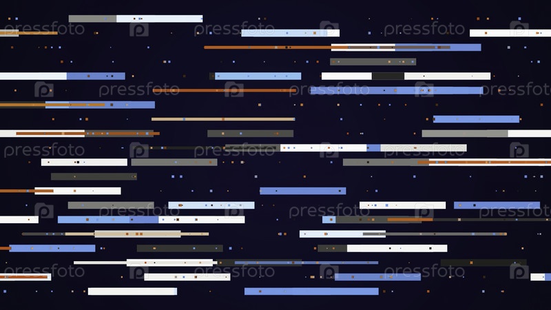 Горизонтальные параллельные графические линии, перемещающиеся из стороны в сторону на темно-синем фоне. Движение. Случайные скользящие сегменты