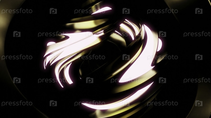 Футуристическая 3D-структура с вращающимся шаром.Дизайн.Неонные линии светятся в вращающемся абстрактном шарике.Металлический абстрактный шар вращается с неоновыми линиями