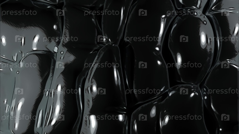 Абстрактная кипящая черная липкая жидкость.Дизайн.Перемещение монохромных пузырей