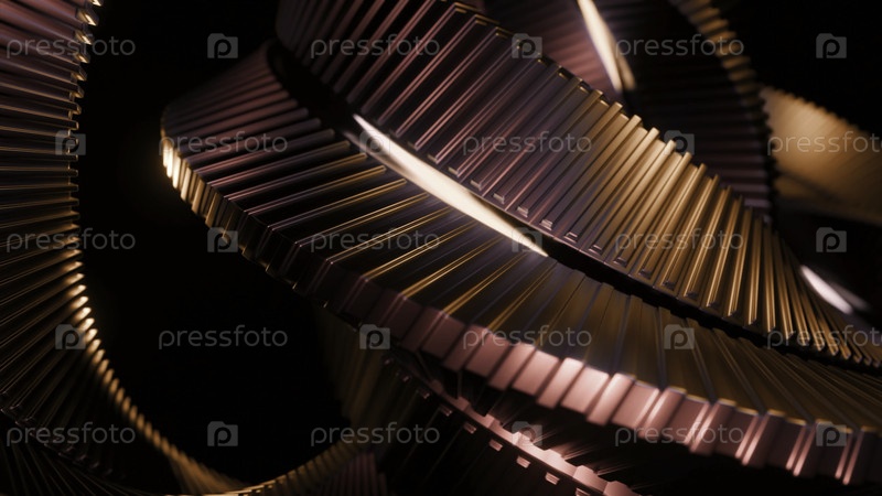 3D спиральная вилка из металлических линий. Дизайн. Металлическая спирала с вращающимися узлами в пространстве. Модель складной спирали с узлами