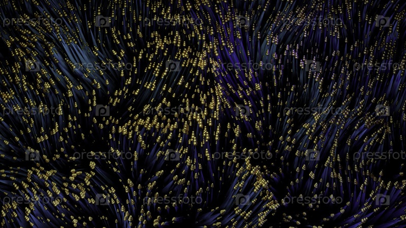 Подводные внеземные морские водоросли голубых и золотых цветов, бесшовная петля. Дизайн. Красивые размахивающие красочные организмы