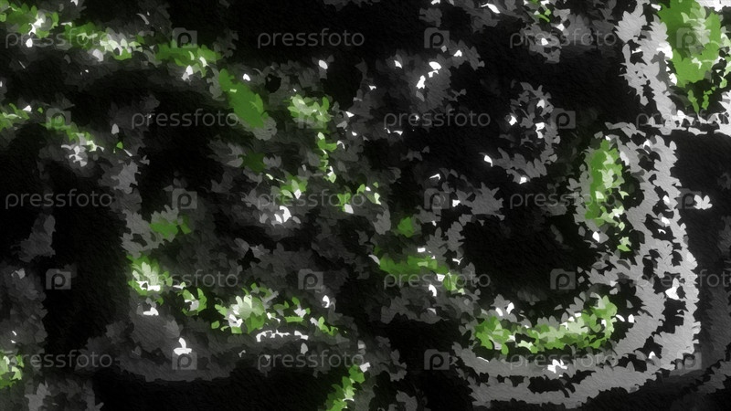 Черный фон с ярко-зелеными и серыми бусинами. Движение. Темная анимация со светящимися различными оттенками, похожими на пятна. Высокое качество 4k кадры