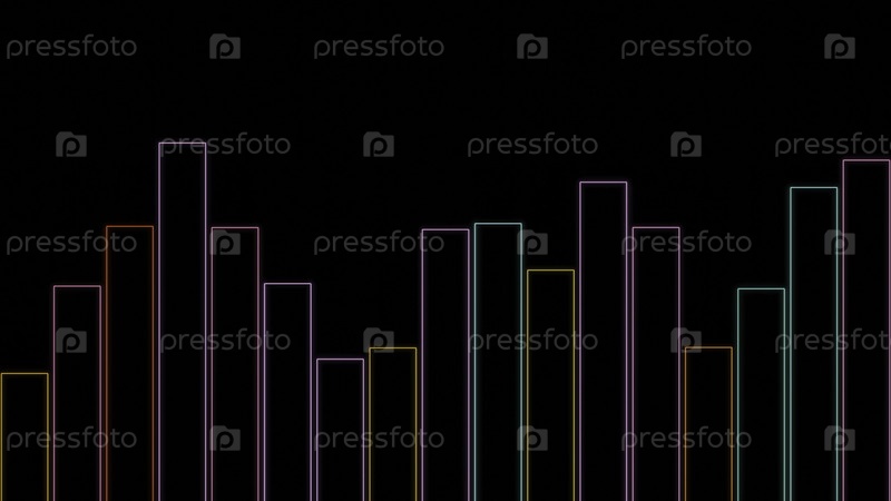 Контурные линии эквалайзера. Дизайн. Красочные полосы двигаются в музыкальном ритме на черном фоне. Простые линии движутся в стиле эквалайзера