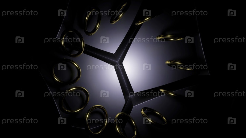 Абстрактное вращение небольших колец на геометрическом фоне сложной фигуры. Дизайн. Красочная абстракция