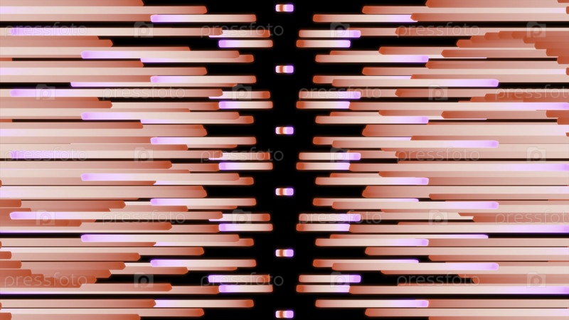 Абстрактный водопад из горизонтальных ярких полос на черном фоне. Дизайн. Поток многих движущихся линий
