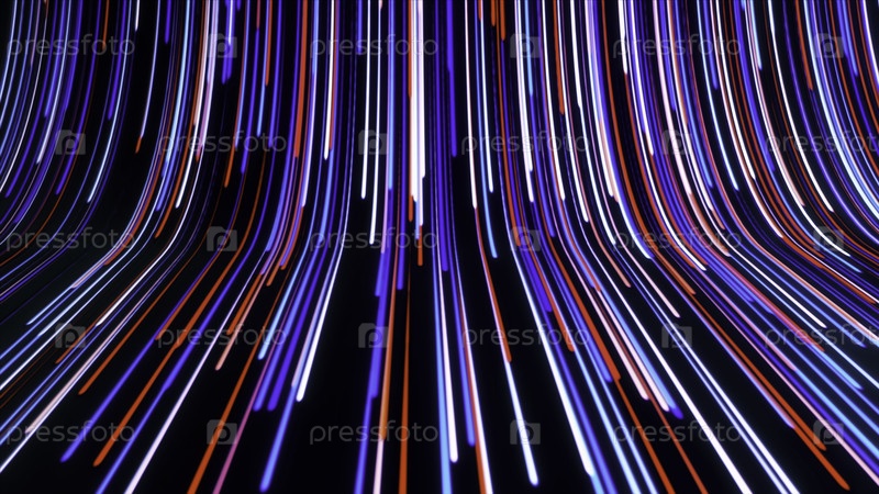 Красочные абстрактные падающие световые полосы, похожие на водопад.Движение. Движущиеся яркие узкие линии на темном фоне