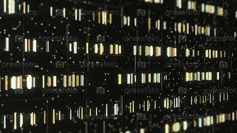 3D электронный фон с движущимися неонными полосами. Анимация. Неонные полосы перемещаются в ряды на черном цифровом фоне. Цифровое поле с двигающимися световыми сетевыми лентами