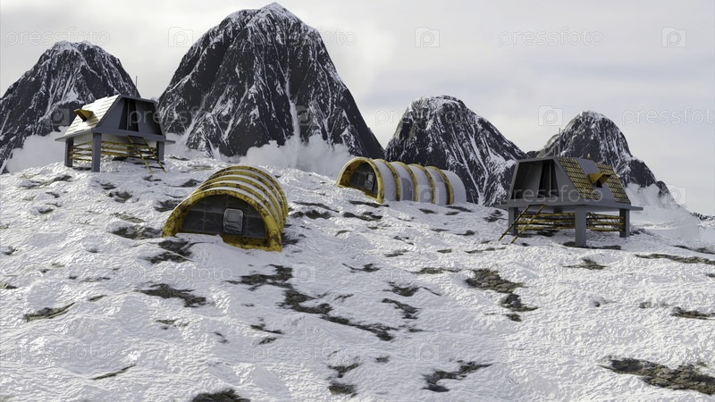 Горная лаборатория.Предыстория.Дизайн.Специальные дома для экспериментов в зимних горах в абстракции