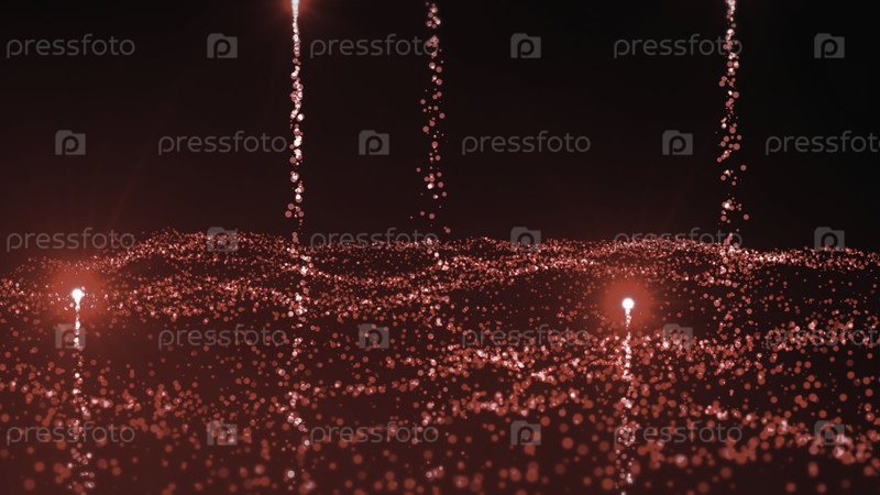 Яркий вращающийся поток с светящимися частицами. Движение. Волнообразный поток светлых частиц со звездами. Восходящие яркие частицы над волнообразным потоком