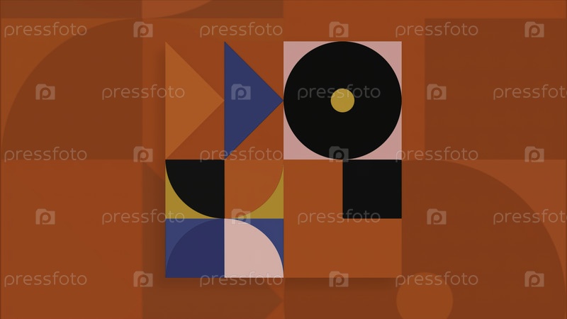 Желто-красная абстракция. Движение. Различные геометрические формы, которые меняют размер и цвет на ярком фоне