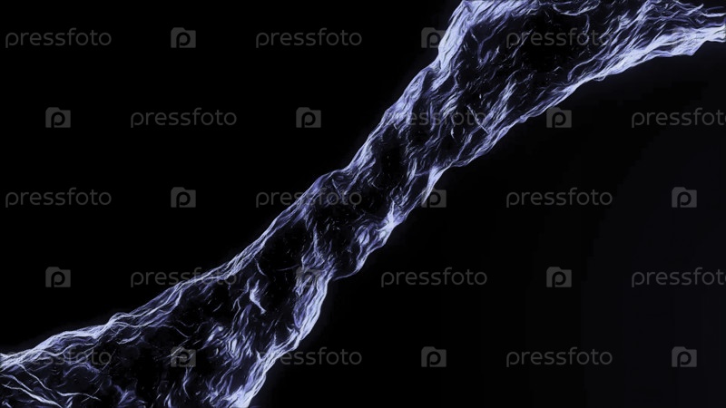 Движение 3D водяного туннеля в космосе. Анимация. Боковой вид движущегося 3D потока жидкости на черном фоне. Жидкая труба перемещается по энергетическому потоку. Магия воды