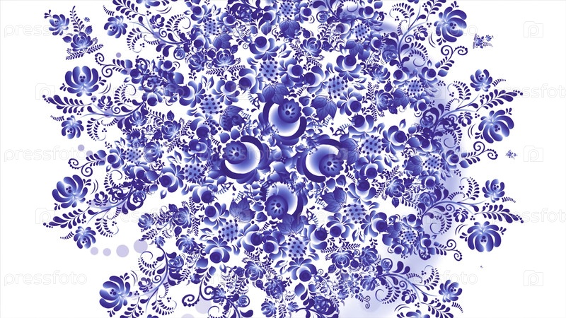 Анимация голубого хохломы на белом фоне. Ретро стиль русского хохолы