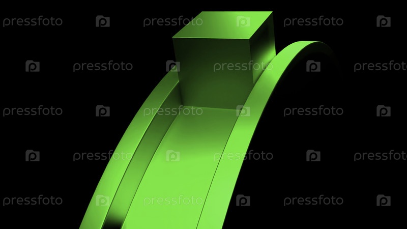 Ближайшее изображение движущегося металлического цветного 3D-куба вдоль изогнутой фигуры.Дизайн.Концепция сюрреализма