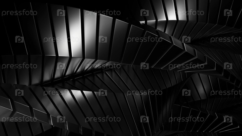 Абстрактная вращающаяся металлическая спираль, гипнотический эффект. Дизайн. Бесконечное движение металлических плиток или лезвий