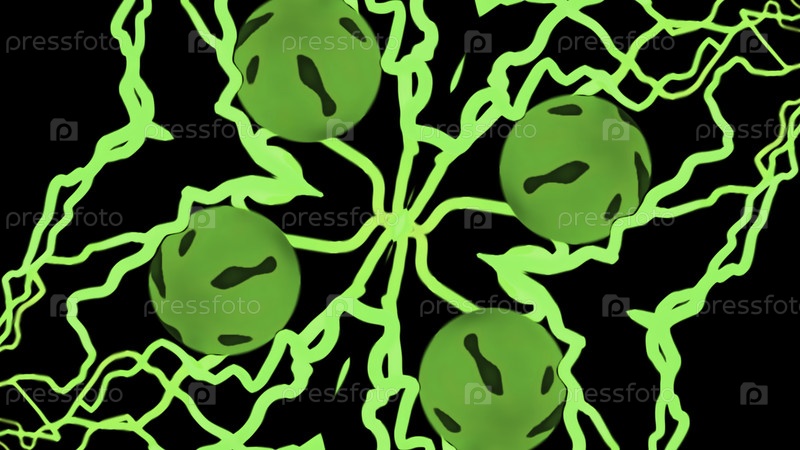 Анимация с шарами и движущимися линиями электричества. Дизайн. Образец с цветными линиями электроэнергии и шариками на черном фоне. Геометрический двигательный рисунок с электрическими абстрактными импульсами линий