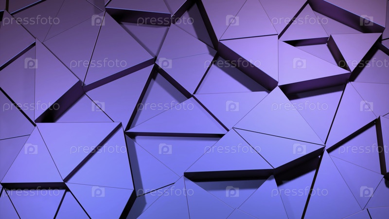 Компьютерная анимация исчезающих и появляющихся треугольников. Дизайн. 3D-фон с треугольным узором и заменой форм. Движущиеся треугольники на фоне 3D мозаики
