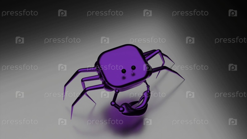 Краб в абстракции.Дизайн.Черно-серый фон, на котором бежит и приседает розовый и слегка фиолетовый краб
