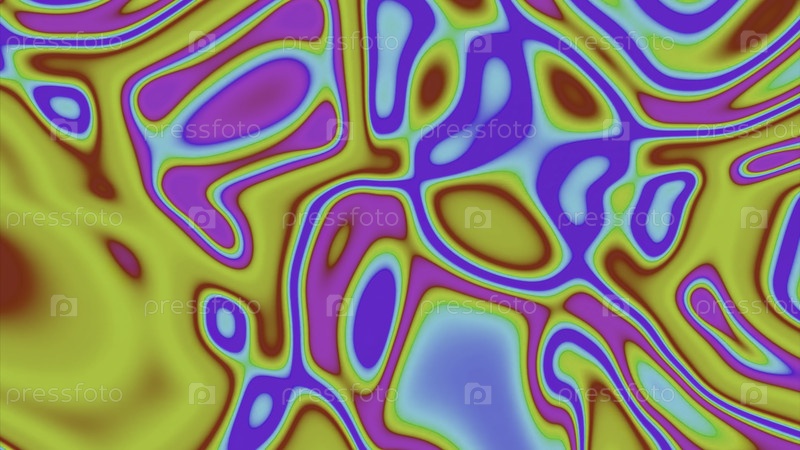 Красочный кислотный рисунок с волной. Дизайн. Психоделические узоры в движущейся красочной жидкости. Фон яркой жидкости с кислыми психоделическими линиями