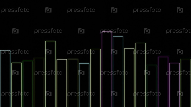 Дизайн. Красочные столбцы контурных линий перемещаются по ритму музыки. Контурный эквалайзер на черном фоне