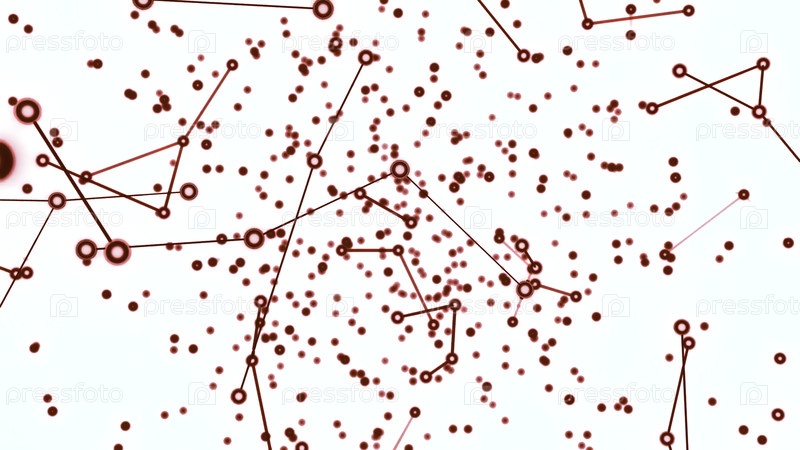 Абстрактный технологический фон с красными анимированными линиями и точками. Дизайн. Геометрический фон с летающими соединениями