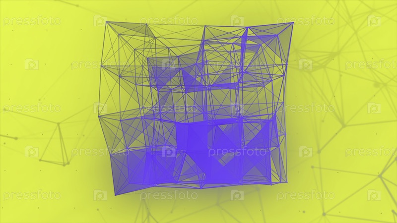 Синий и желтый фон.Движение.Ясные геометрические формы, сделанные из маленьких тонких сеток, которые меняют местоположение в анимации
