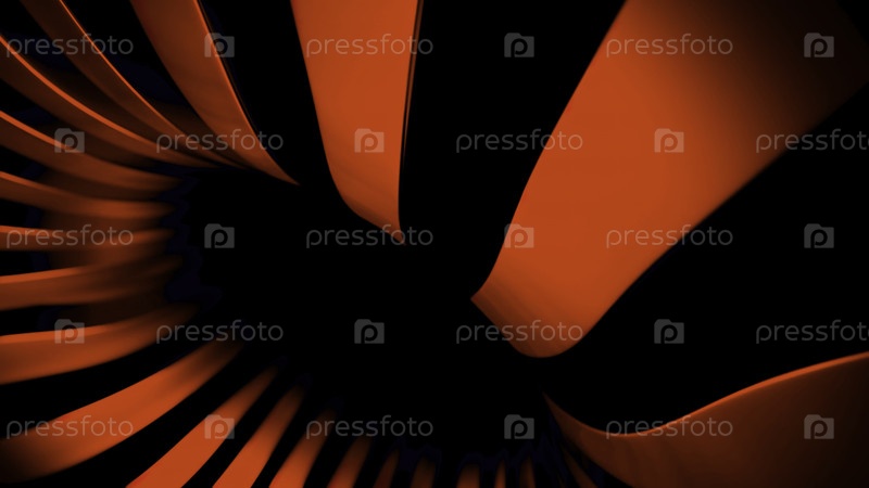 Размытые яркие ленты создают эффект отверстия или цветочного бутона с листьями. Дизайн. 3D-абстракция с размахивающими широкими линиями