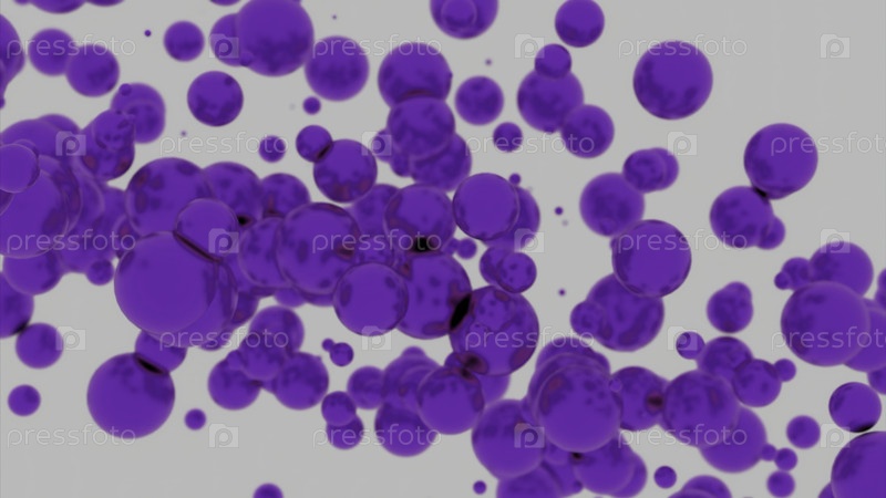 Фиолетовые кровяные клетки, движущиеся в кровотоке.Дизайн.Розовые частицы на белом фоне