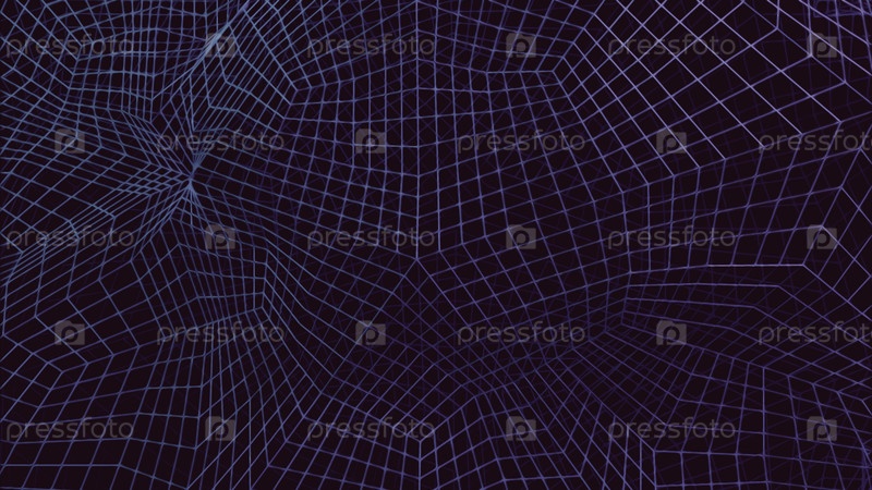 Футуристическая сетевая волна, кибертехнологии, большие данные. Дизайн. Светло-синяя квадратная сетка на розовом фоне