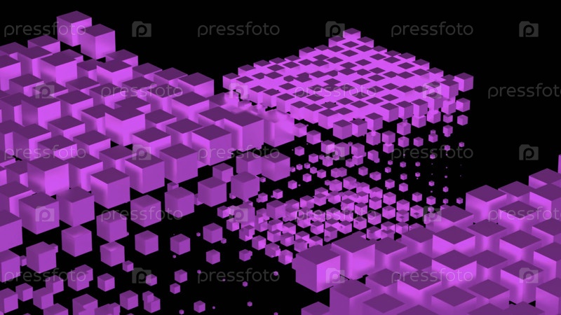 Абстрактные прыгающие яркие кубики, похожие на цифровые облака. Дизайн. Яркие 3D-кубические формы на черном фоне