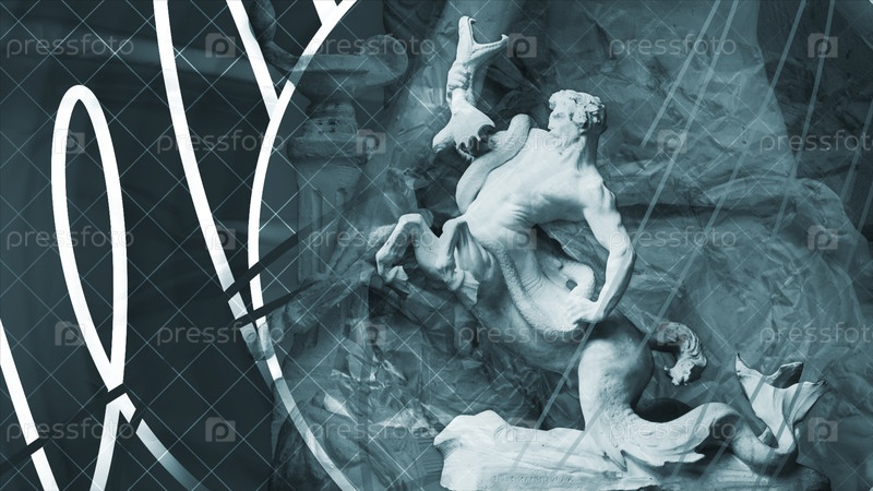Фиолетовый и бирюзовый фон. Движение. Яркие старинные скульптуры, появляющиеся и исчезающие с белыми линиями в абстракции. Высокое качество 4k кадров