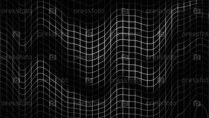 Абстрактный рисунок сетки, образующий искаженную волну на черном фоне