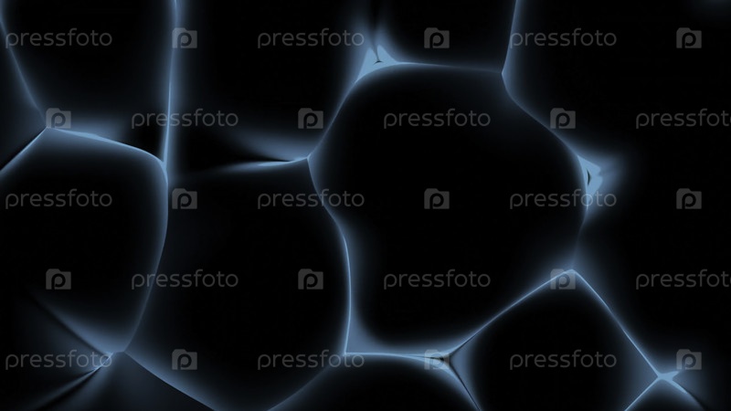 Движение трехмерных форм с помощью плазменного света. Дизайн. Яркий свет энергии плазмы с движущейся текстурой темной материи. Черная 3D-структура, двигающаяся при помощи плазменного света