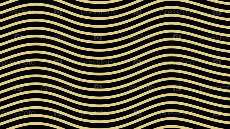 Полосатый фон с искаженным изгибом. Дизайн. Яркий фон со полосами кривые с визуальной иллюзией. Цветные полосы с волнистой кривизной на черном фоне