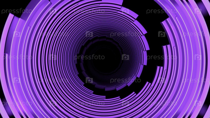 Зеленые и фиолетовые яркие линии. Дизайн. Черный фон с полосками, вращающимися в круг, выполненные в 3D-абстракции. Высокое качество 4k кадров