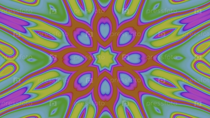 Калейдоскоп динамический творческий фон в форме звезды. Дизайн. Психоделические узоры меняющихся многоцветных форм
