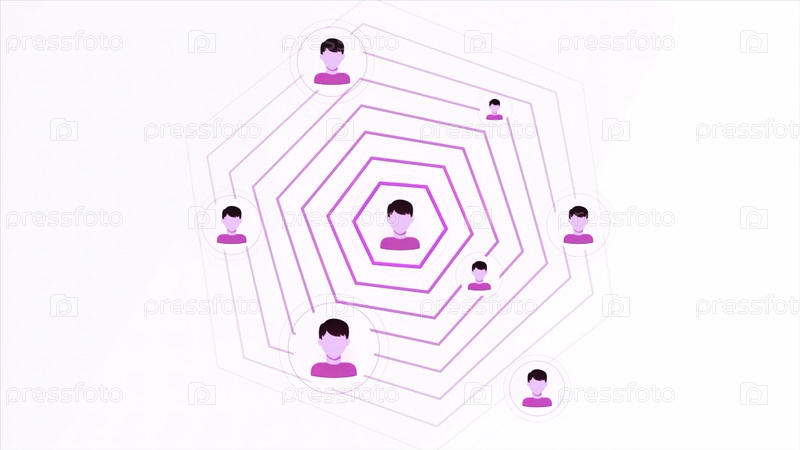 Анимация с кругами и значками учетных записей. Движение. Иконы человека с распространением кругов. Распространение сигнала от иконки к человеку. Информационная анимация с символами и социальными сетями